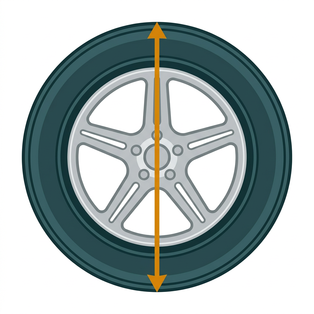 Vzdálenost od středu kola k nejvzdálenějšímu bodu pneumatiky, vynásobená dvěma. Jedná se o celkovou výšku pneumatiky včetně kola.